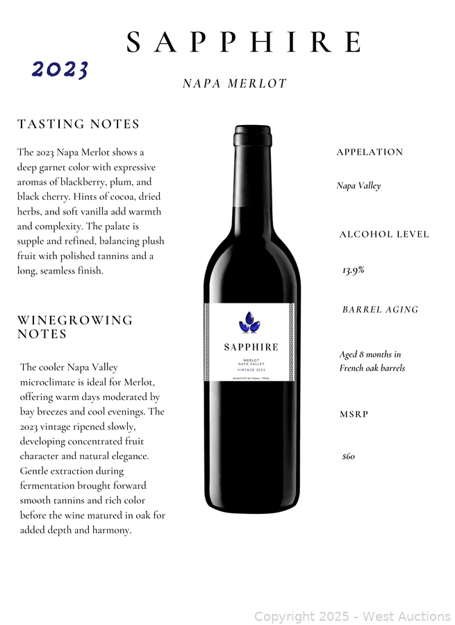 (1 Case/12 Bottles) 2023 Napa Merlot 750 ml | West Auctions