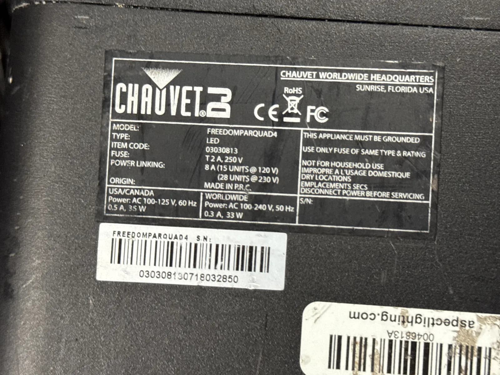(18) Chauvet DJ Freedom Par Quad-4 LED Lighting Fixtures With Heavy Duty Rolling Hard Shell Road Case | West Auctions