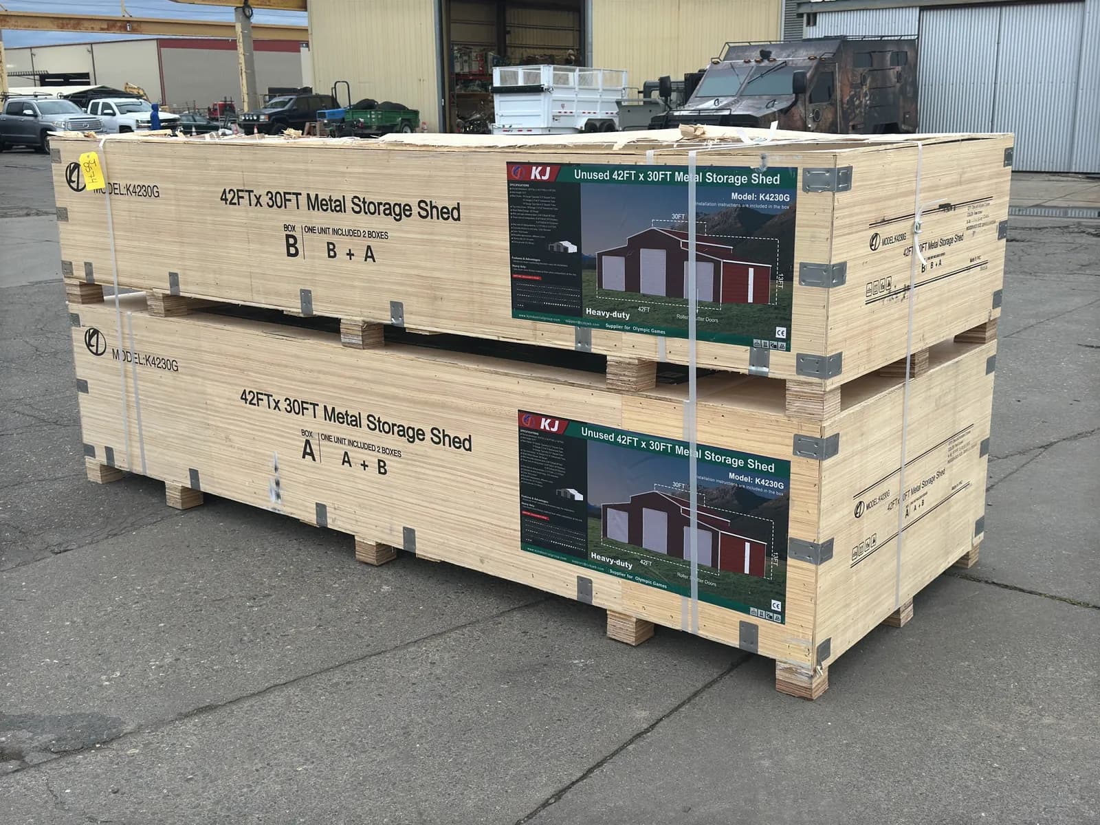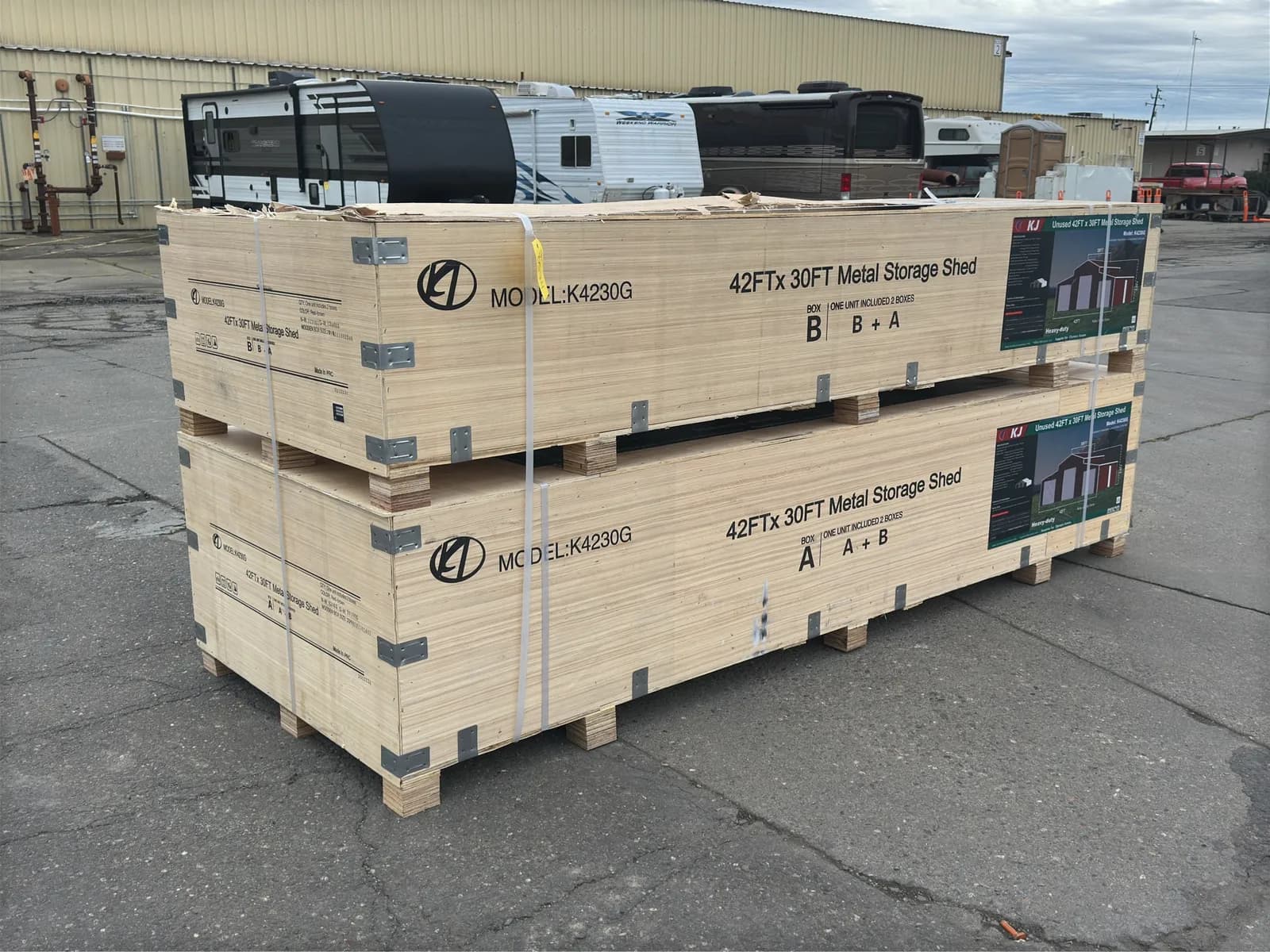 2025 KJ 42'x30' Heavy-Duty Metal Storage Shed Model K4230G (Unused) | West Auctions