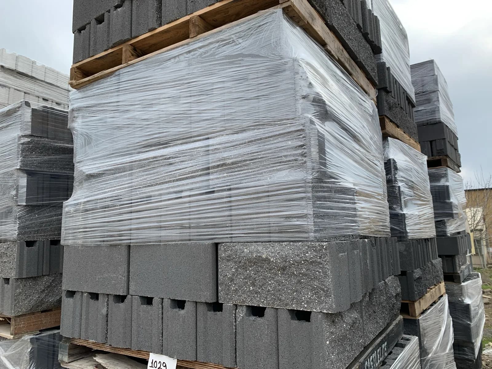 (3) Pallets Of 6x8x16 Split Face/Comb Face Fence Block Charcoal | West Auctions