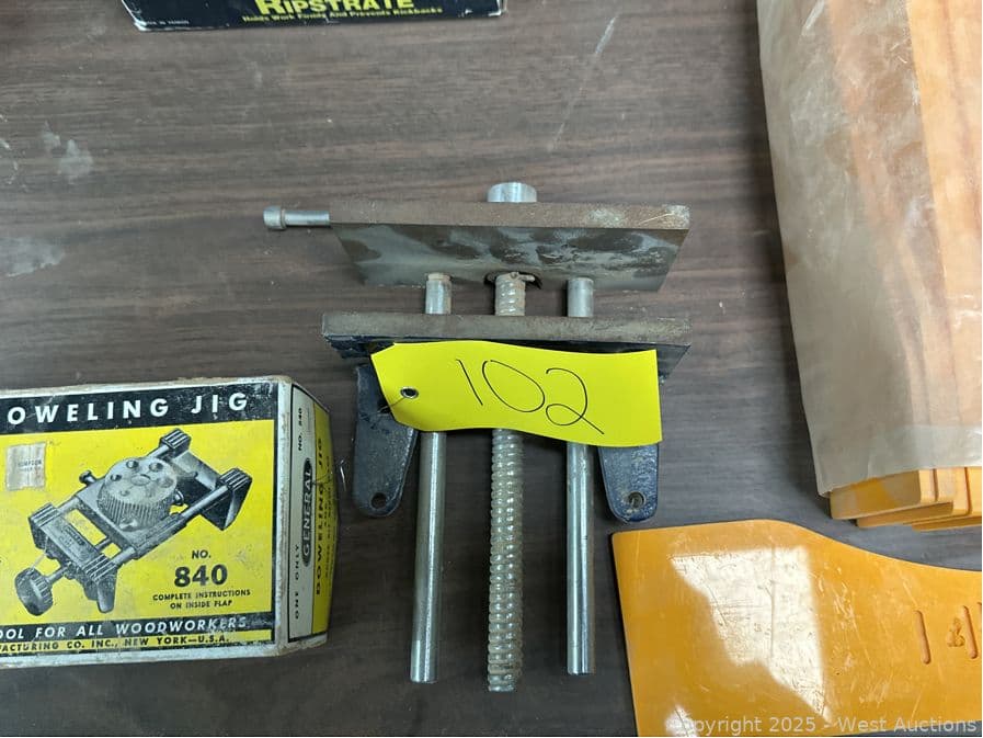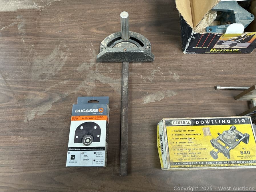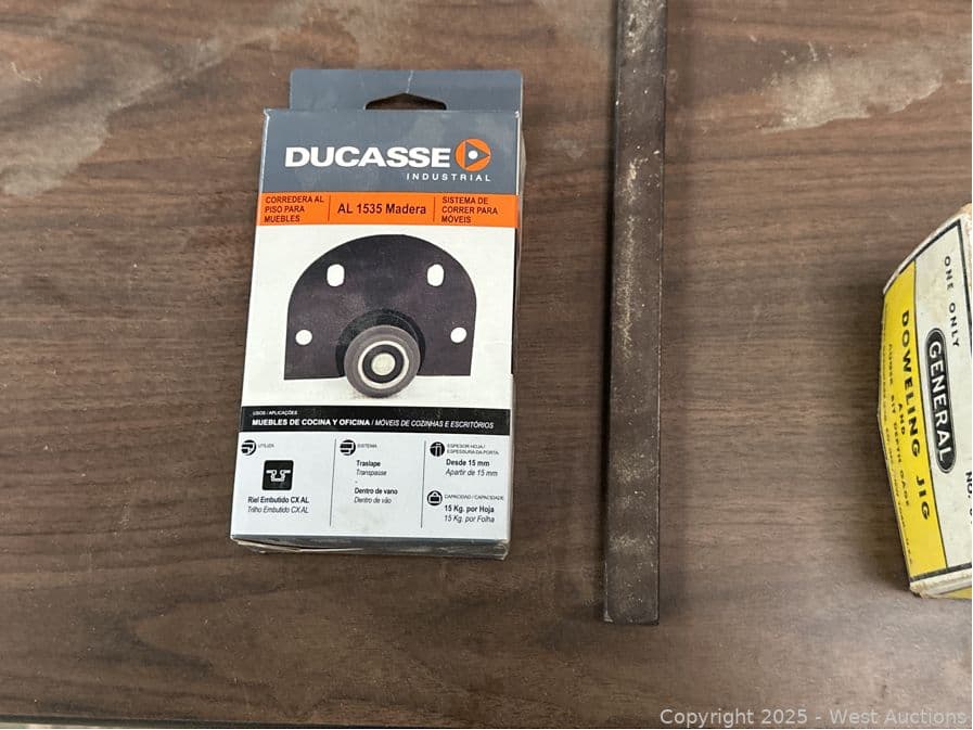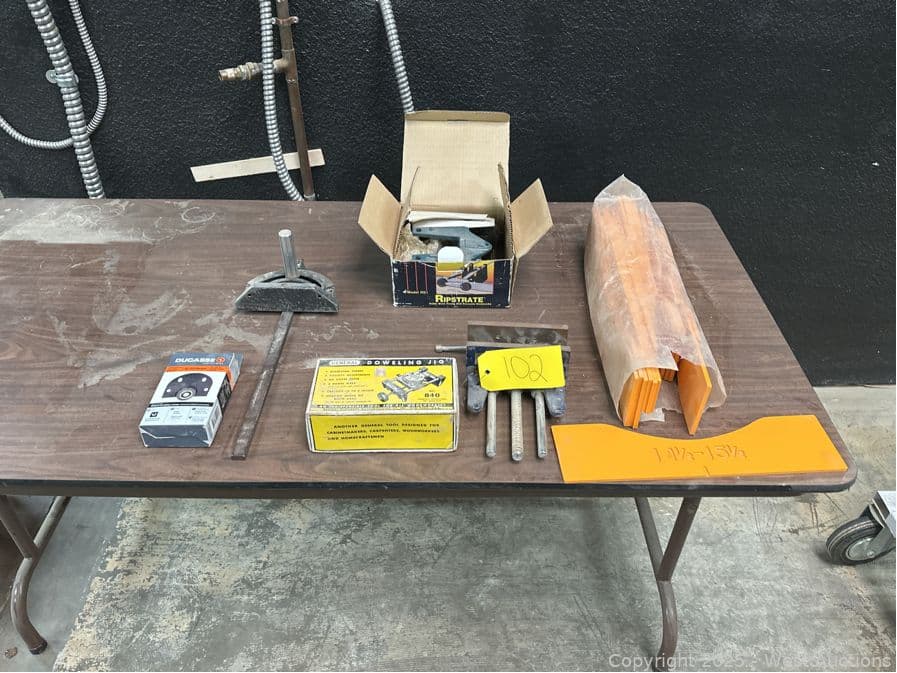 5’ Folding Table And Contents: Doweling Jigs, Plastics, Door Rollers | West Auctions