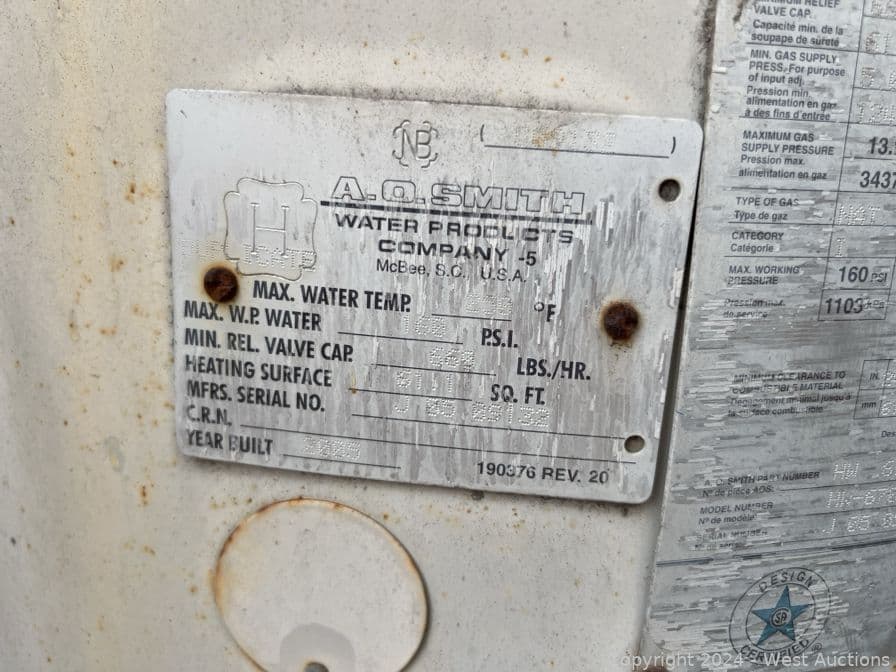 AO Smith 660 Lbs Per Hour Water Heater | West Auctions
