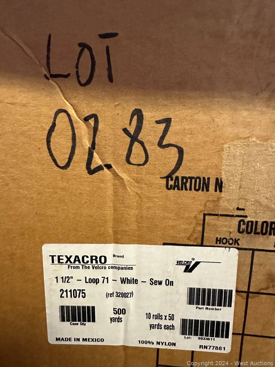 Box Of 500yds (10 Rolls) White 1.5” Sew-on Loop Material | West Auctions