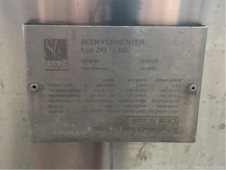 Brew Pro 15BBL Beer Fermenter Tank | West Auctions