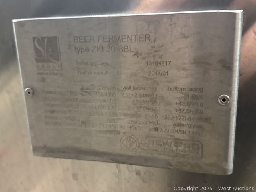 Brew Pro 30BBL Beer Fermenter Tank | West Auctions