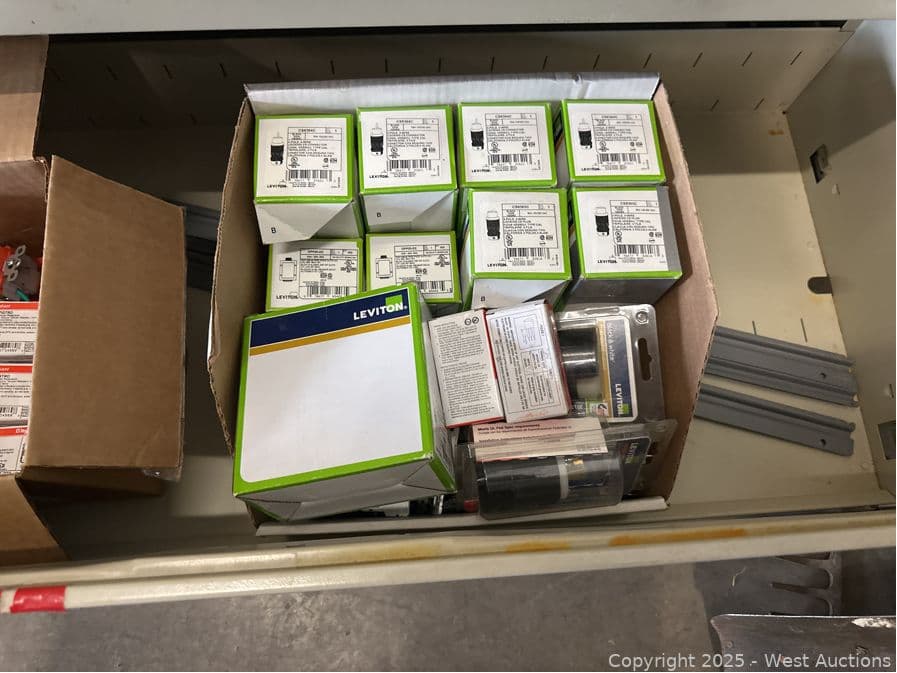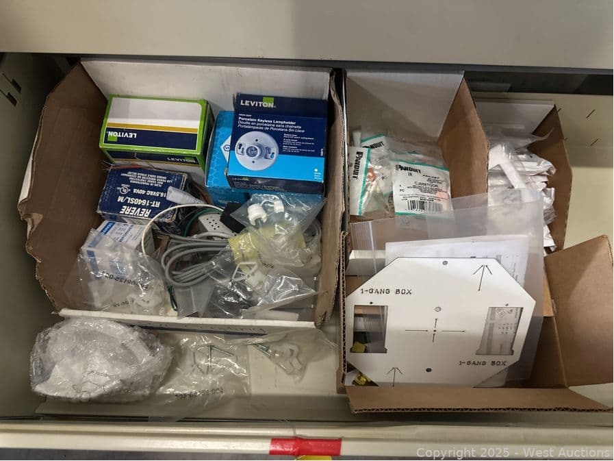 Contents Of (2) Drawers: Plug In Transformer, Porcelain Keyless Lampholder, Switch Covers, And More | West Auctions