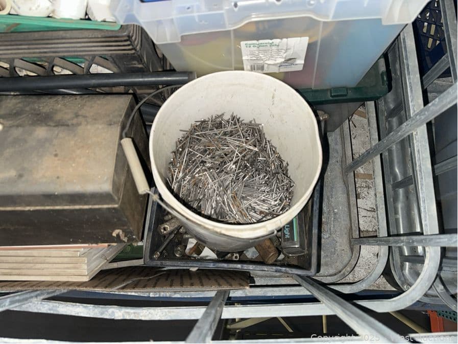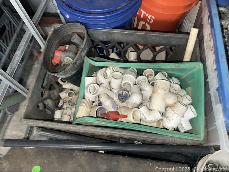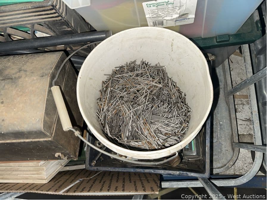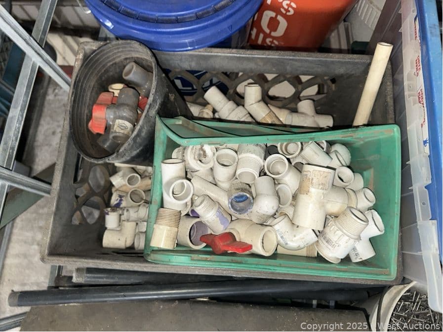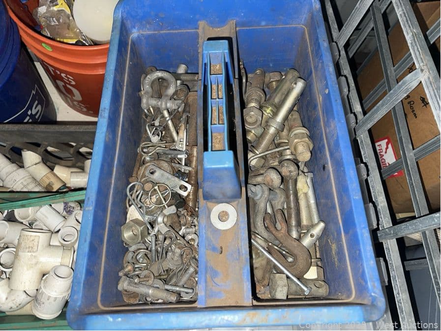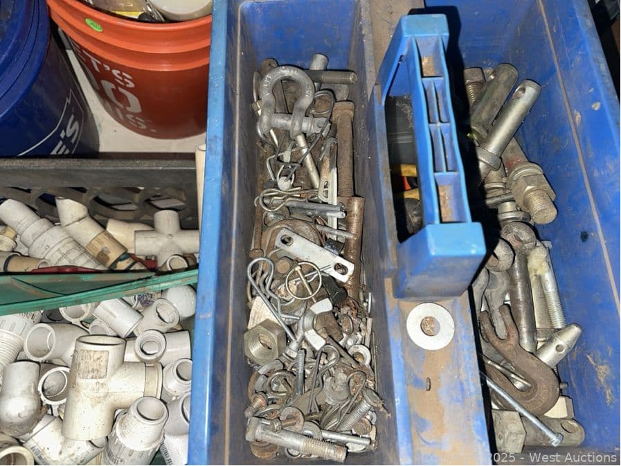 Contents Of Bin: Tools, Toolboxes, PVC, Hardware, Shackles, Nails | West Auctions