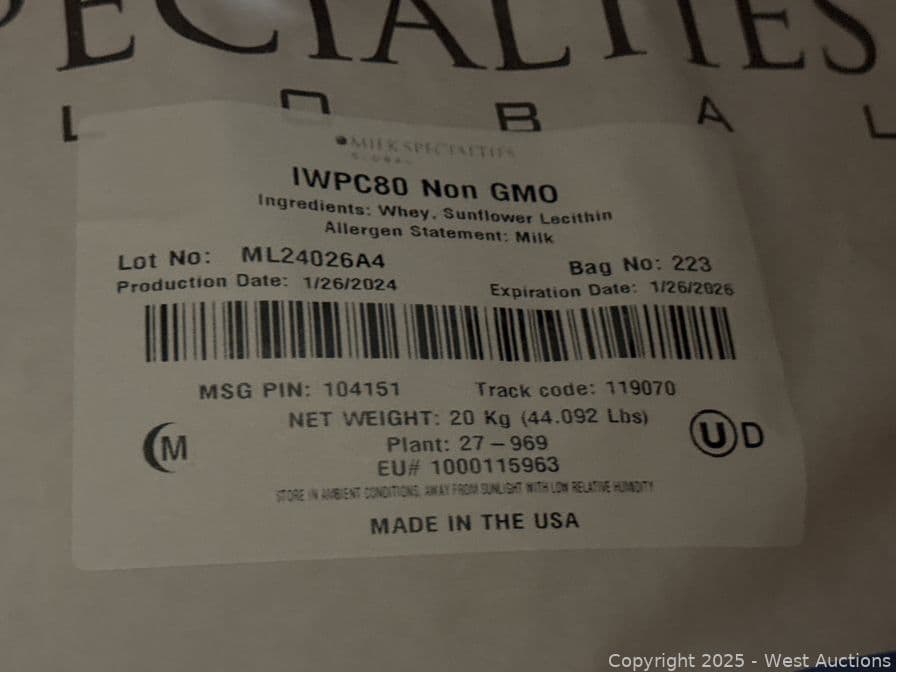 Contents Of Pallet: (2) 44lbs Bags of Baking Supply | West Auctions