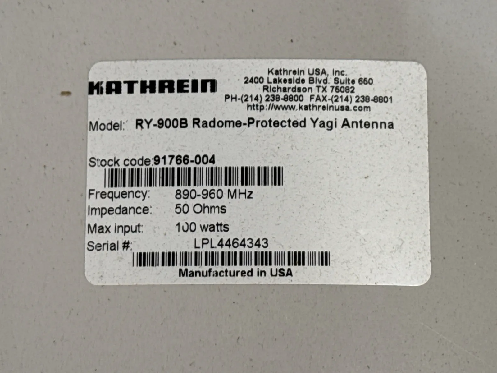 Contents Of Pallet: (2) Kathrein RY-900B Randome-Protected Yagi Antennas And Small Batteries. | West Auctions