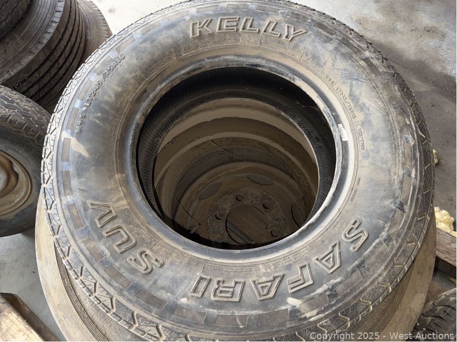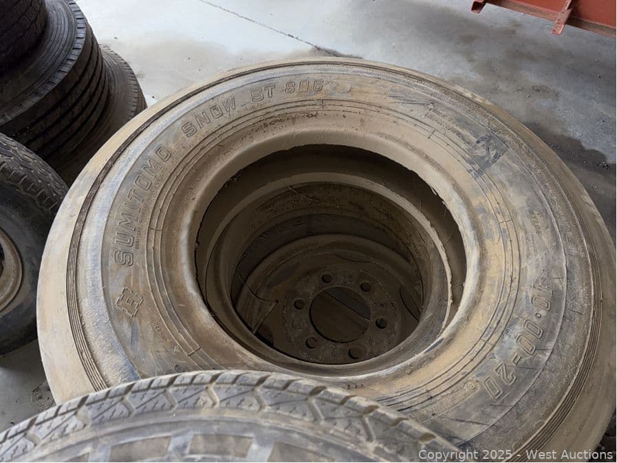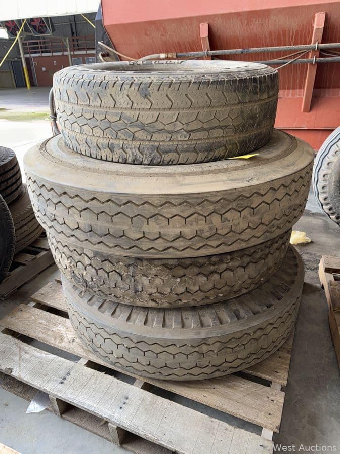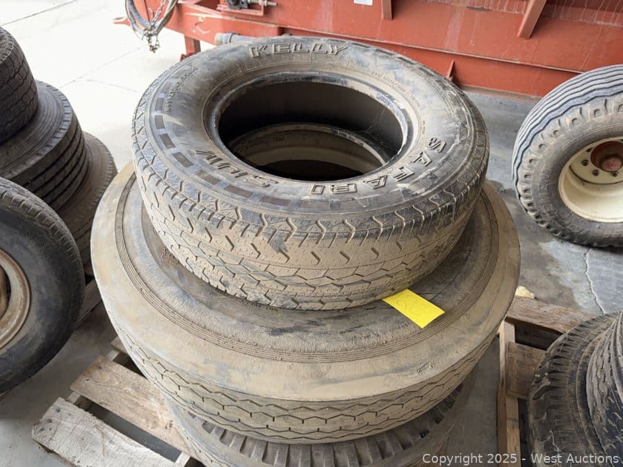 Contents Of Pallet (4) Assorted Tires With (1) Truck Wheel | West Auctions