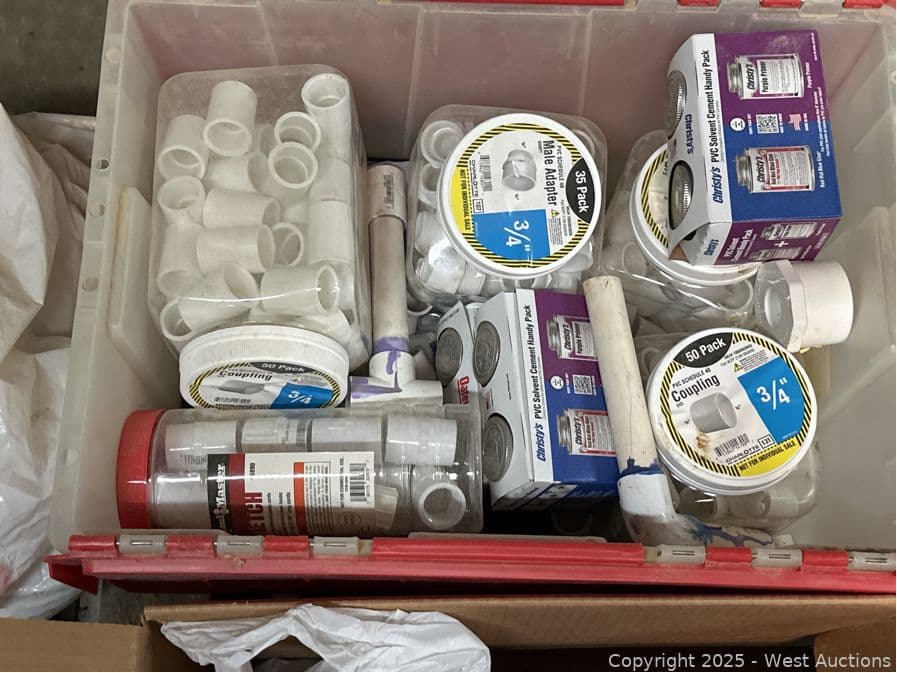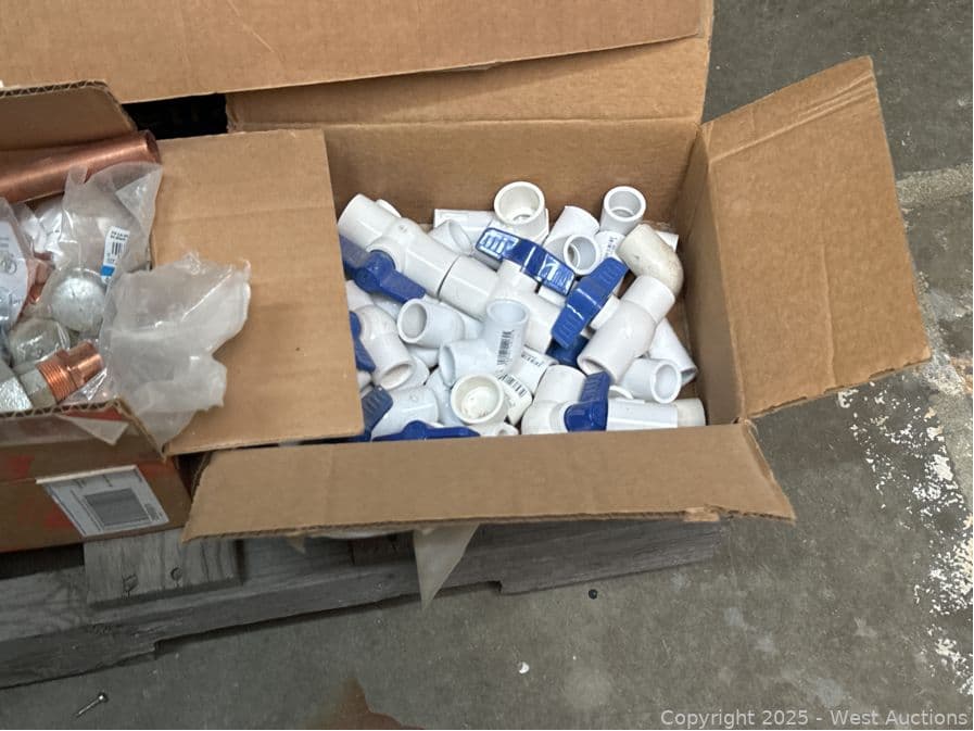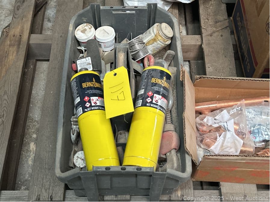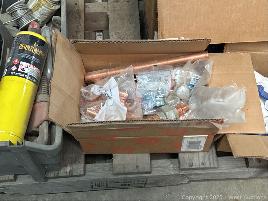 Contents Of Pallet: Copper Fittings, PVC Fittings, Tools, Gas | West Auctions