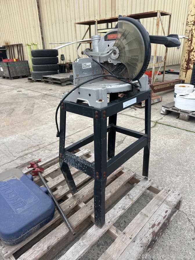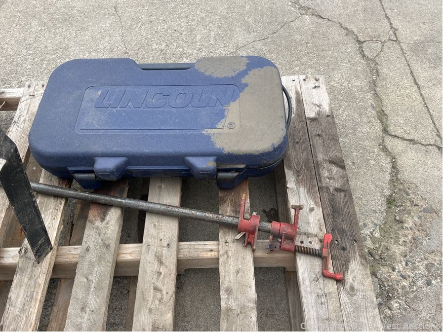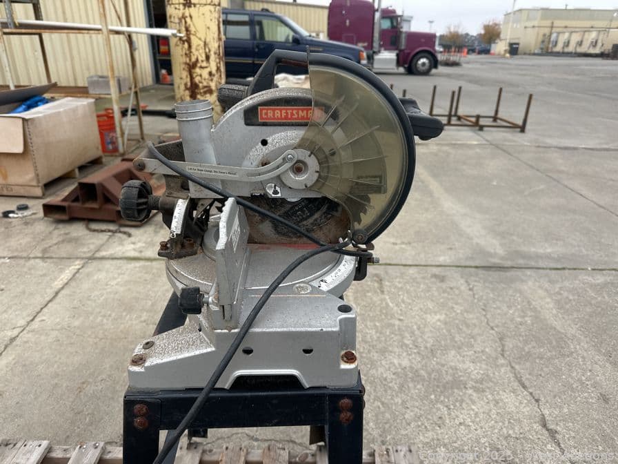Contents Of Pallet: Craftsman 10” Compound Miter Saw, Pipe Clamp, And Lincoln Grease Gun | West Auctions