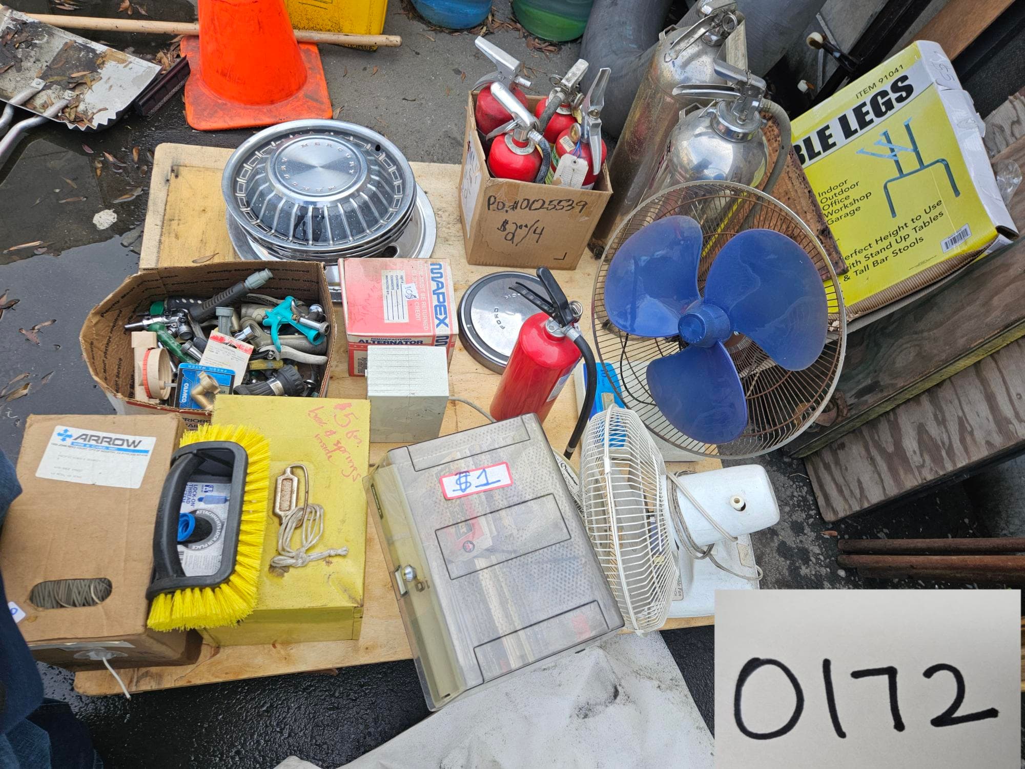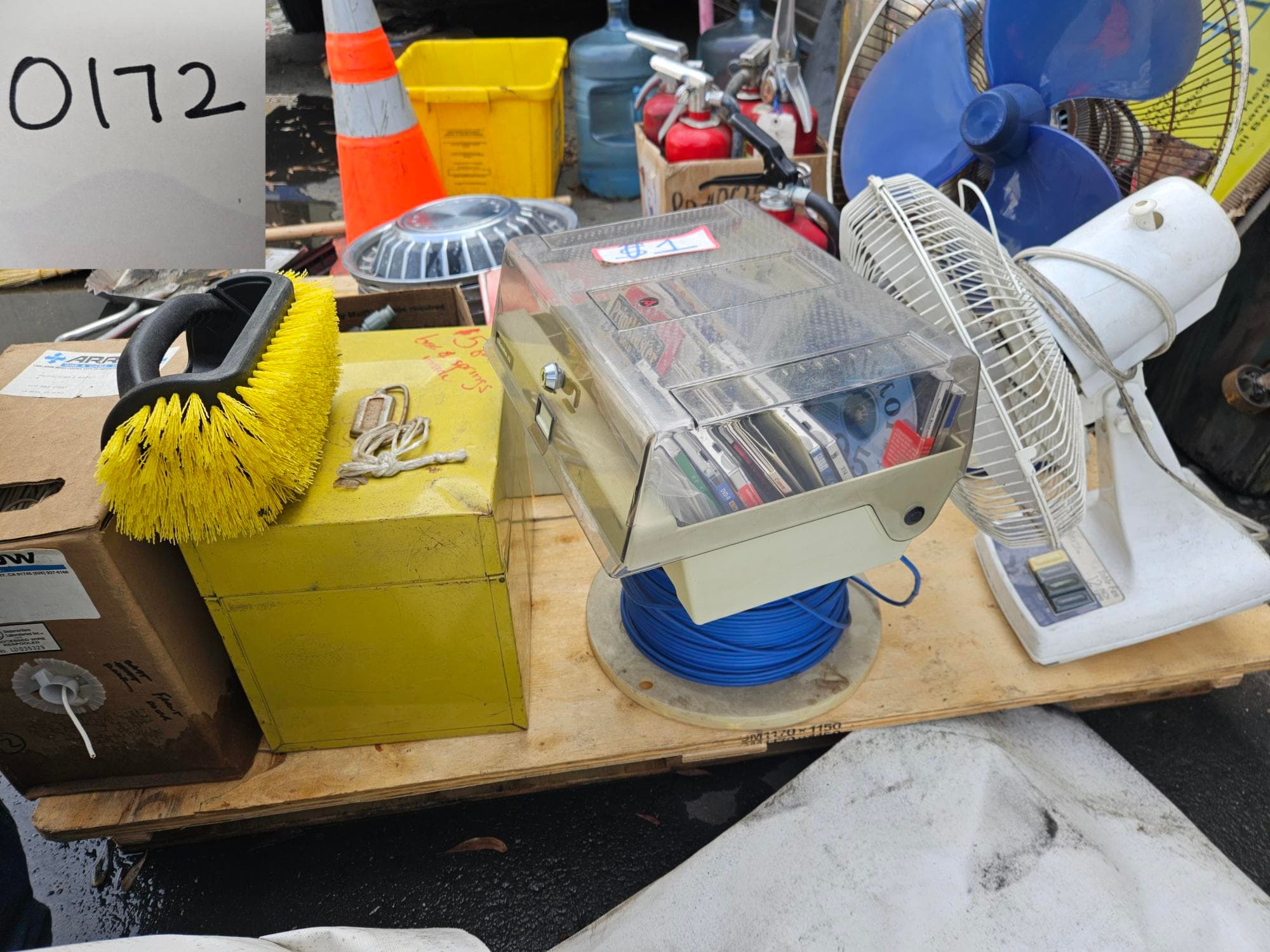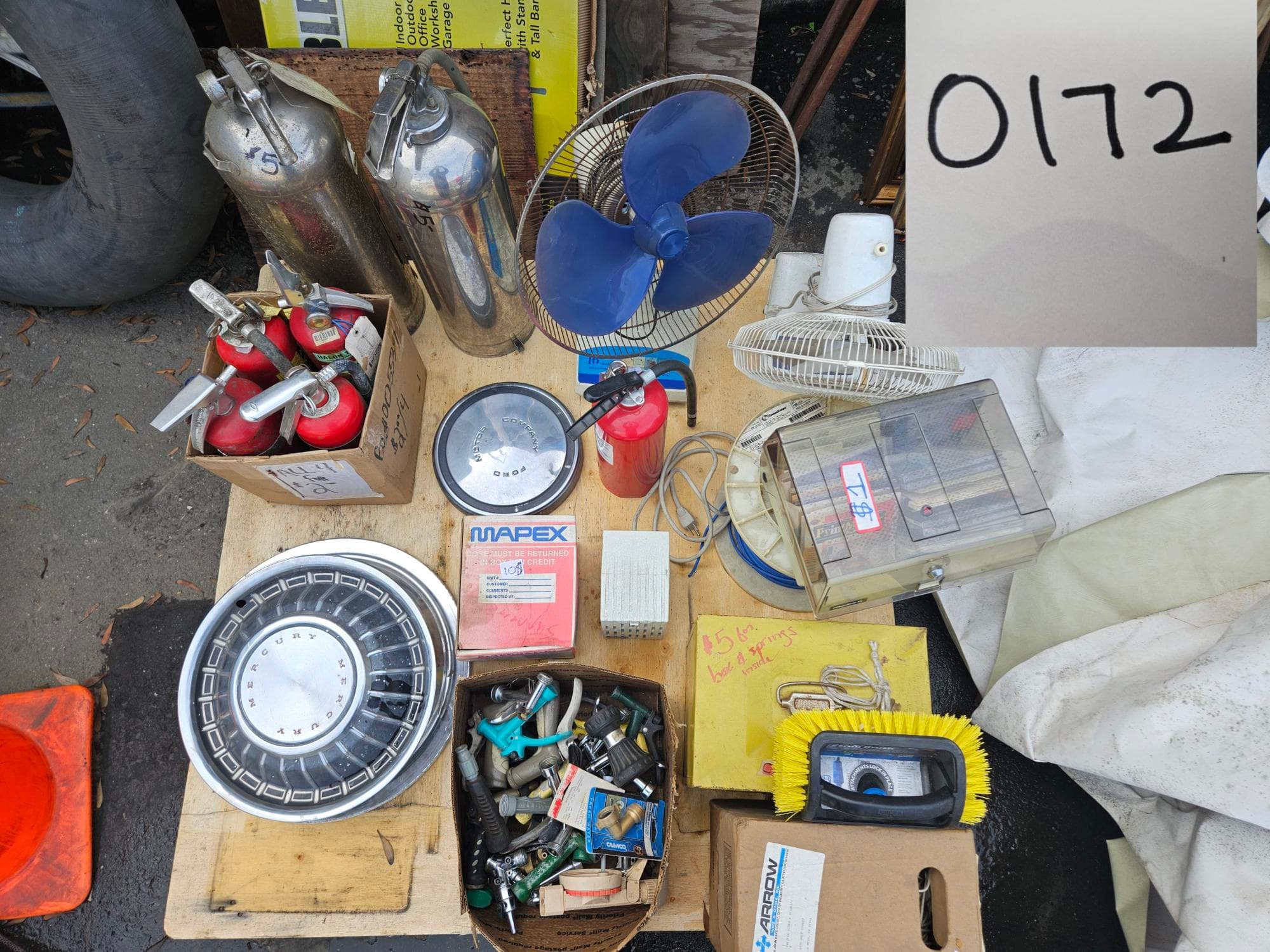 Contents of Pallet: Fire Extinguishers, Rims, Hose Sprayers and More | West Auctions