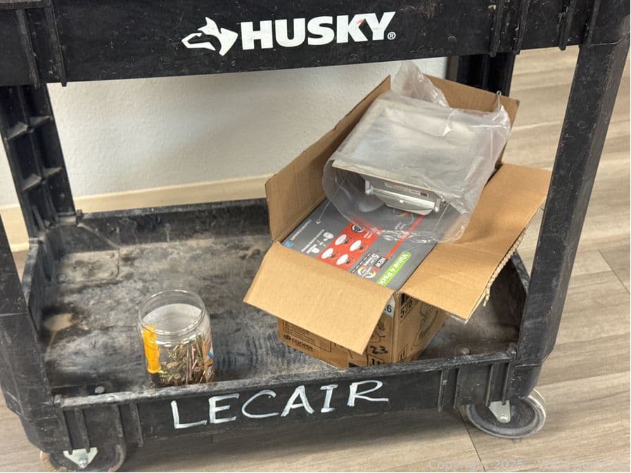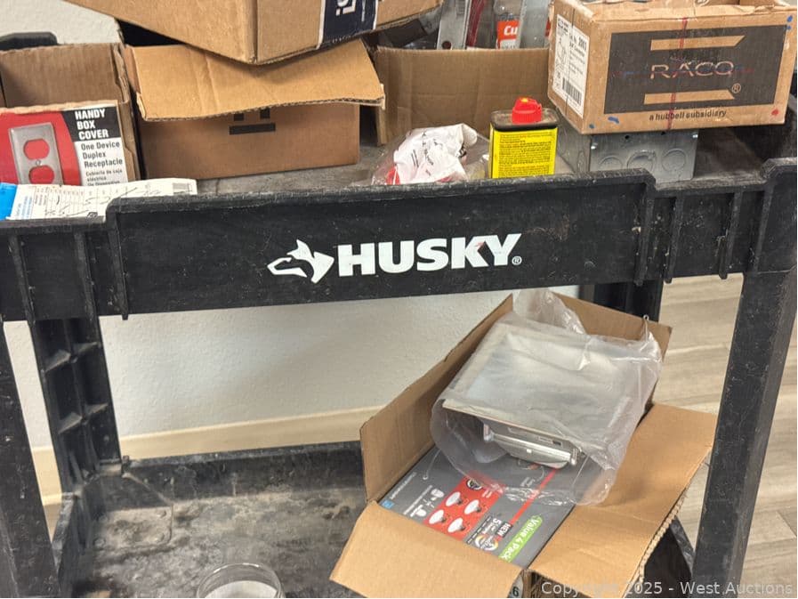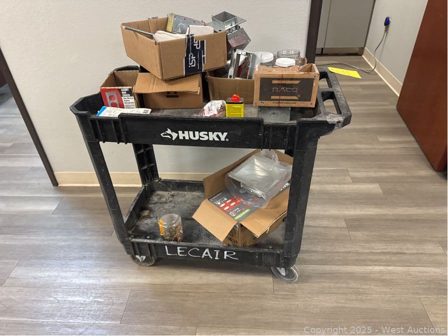 Husky Rolling Plastic Cart And Contents: Electrical Supply | West Auctions