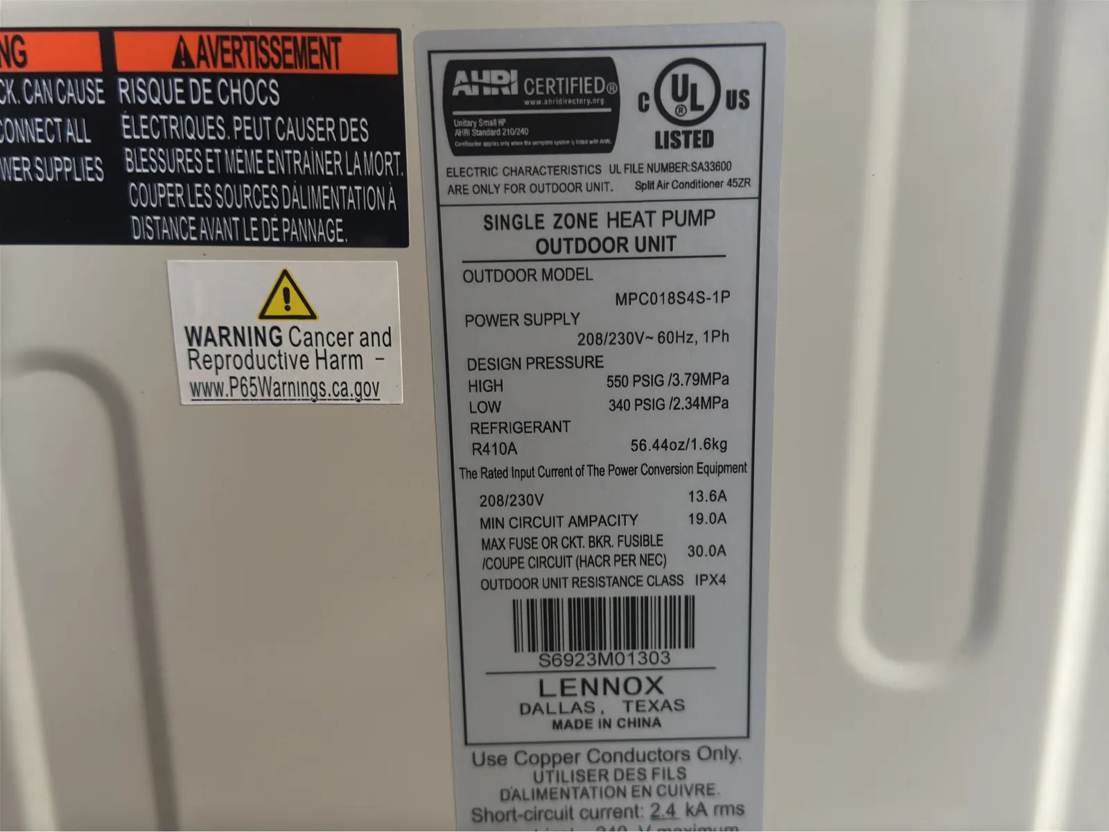 Lennox Mini-Split Heat Pump Single Zone Outdoor Unit (Unused) | West Auctions