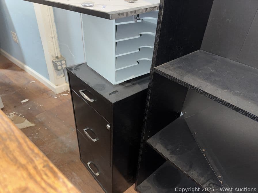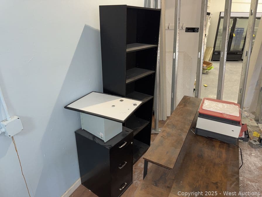 Office Area With Desk, Bookshelf, Copier And More | West Auctions
