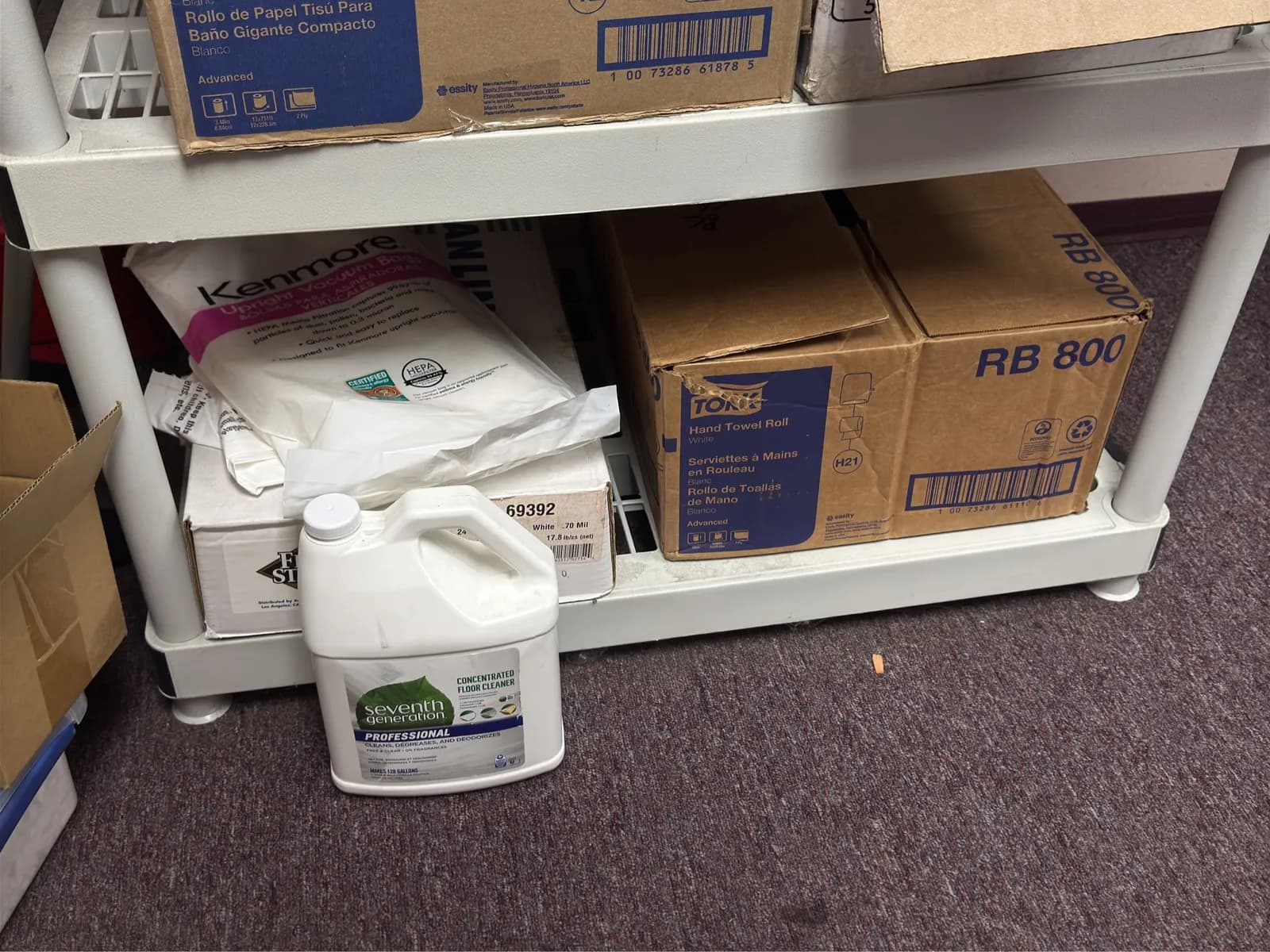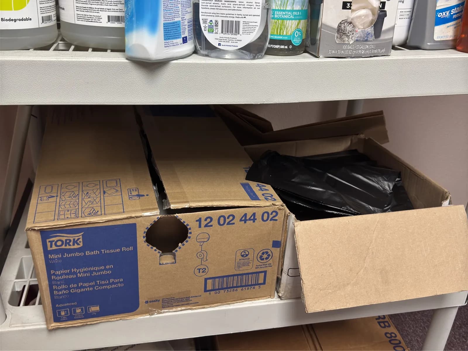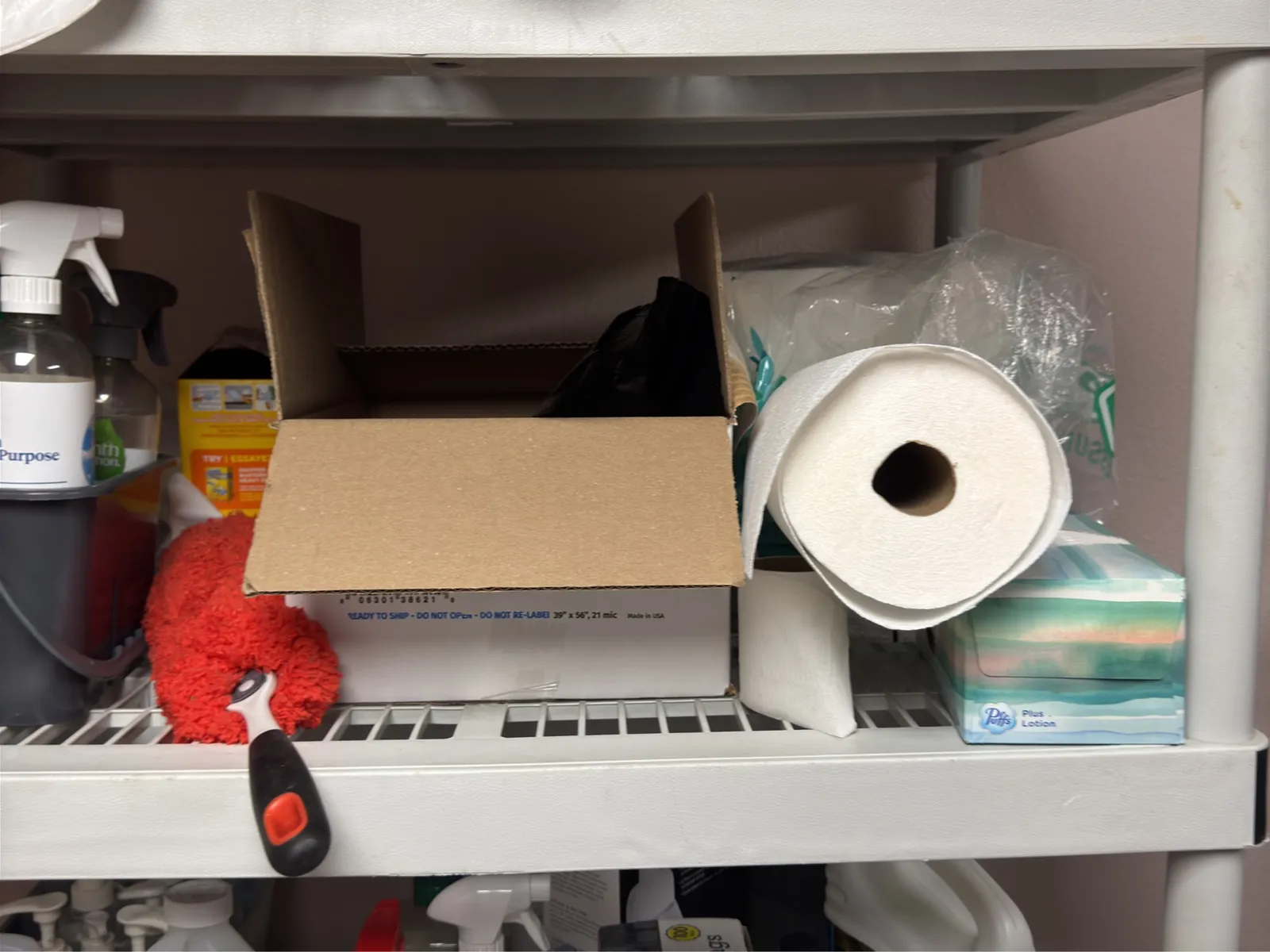 Rack And Contents: Cleaning Supplies, Trash Bags, Bulbs And Wooden Boards. | West Auctions