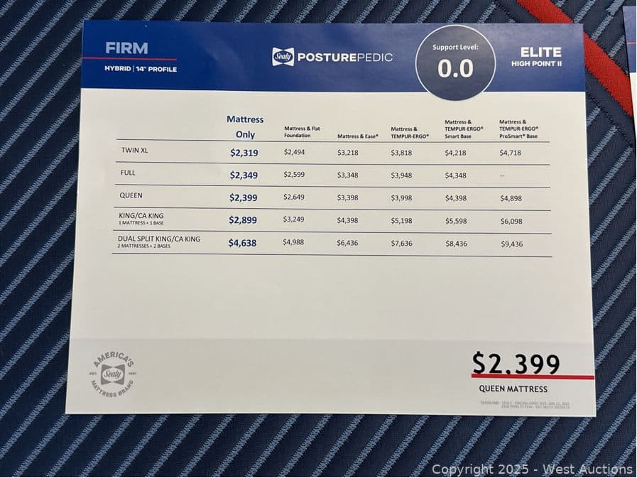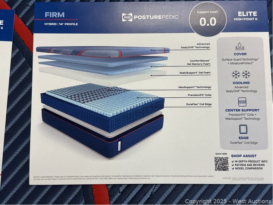 Sealy Posturepedic Elite High Point II Firm - Queen - $2,399 Retail | West Auctions