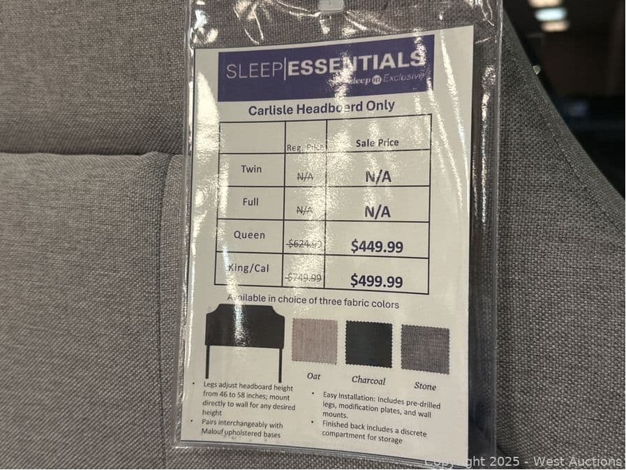 Sleep Essentials Carlisle Headboard - Queen | West Auctions