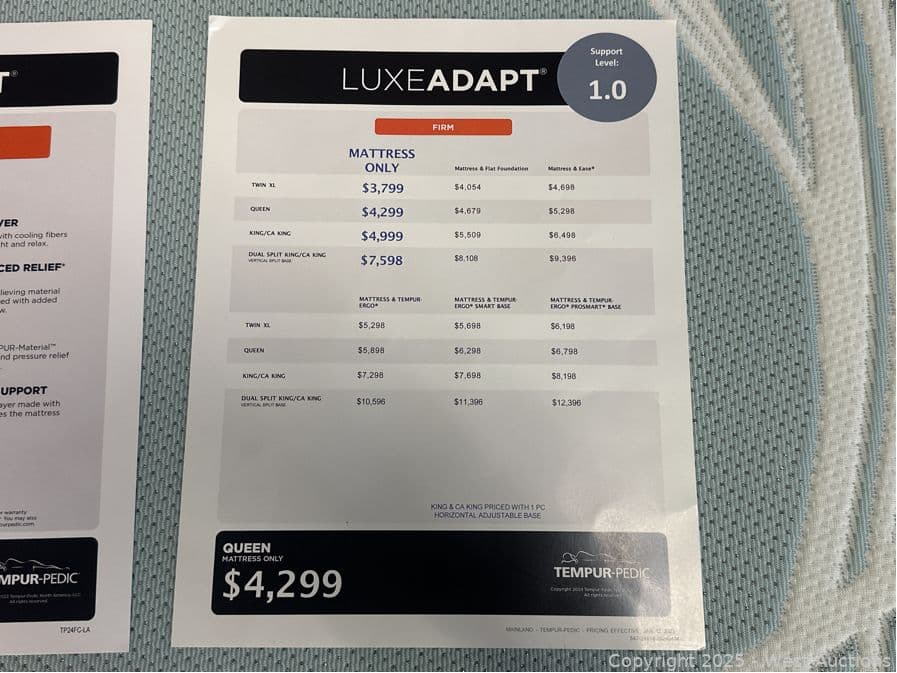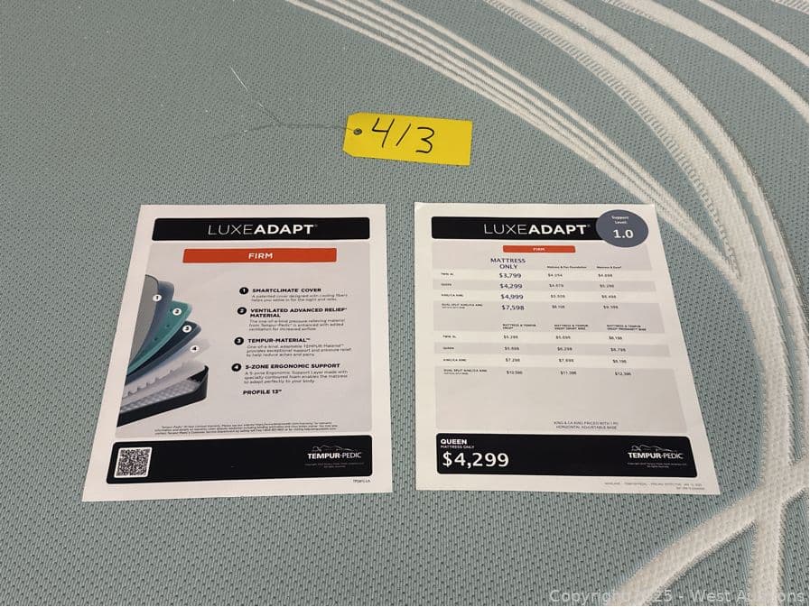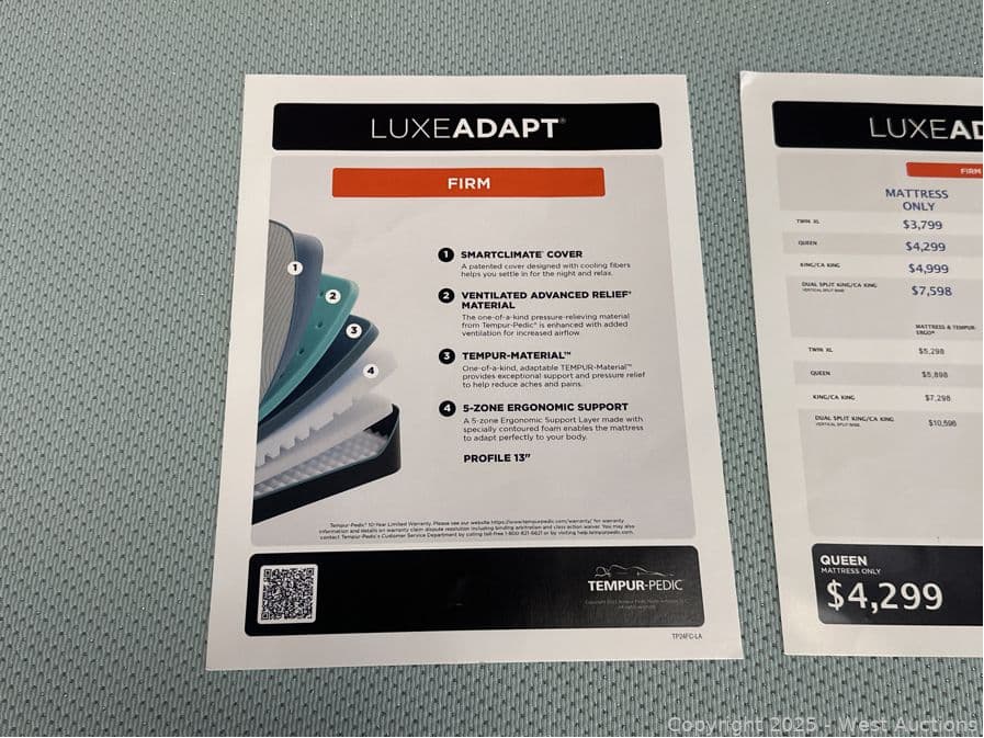 Tempur Pedic LuxeAdapt Firm - Queen - $4,299 Retail | West Auctions