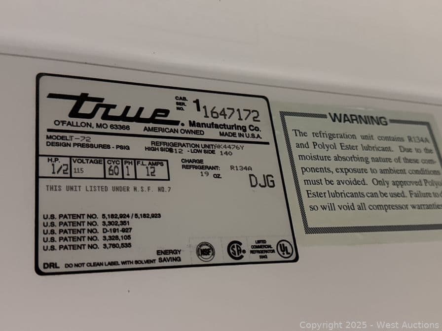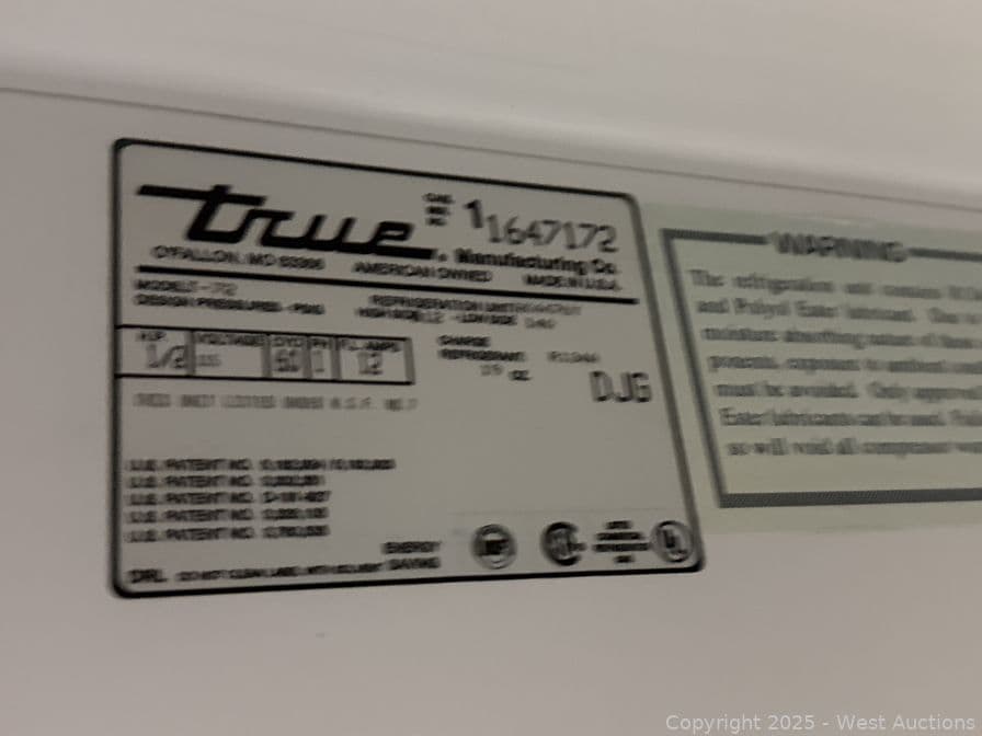 True T-72 (3) Door Locking Refrigerator | West Auctions