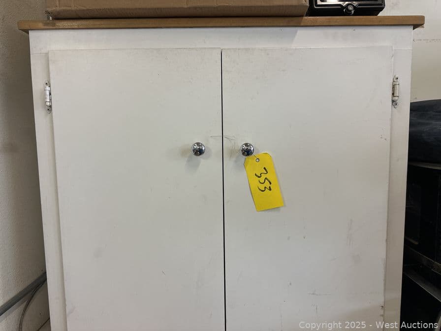 Wood Cabinet With Box Of Snap N Rack Parts | West Auctions
